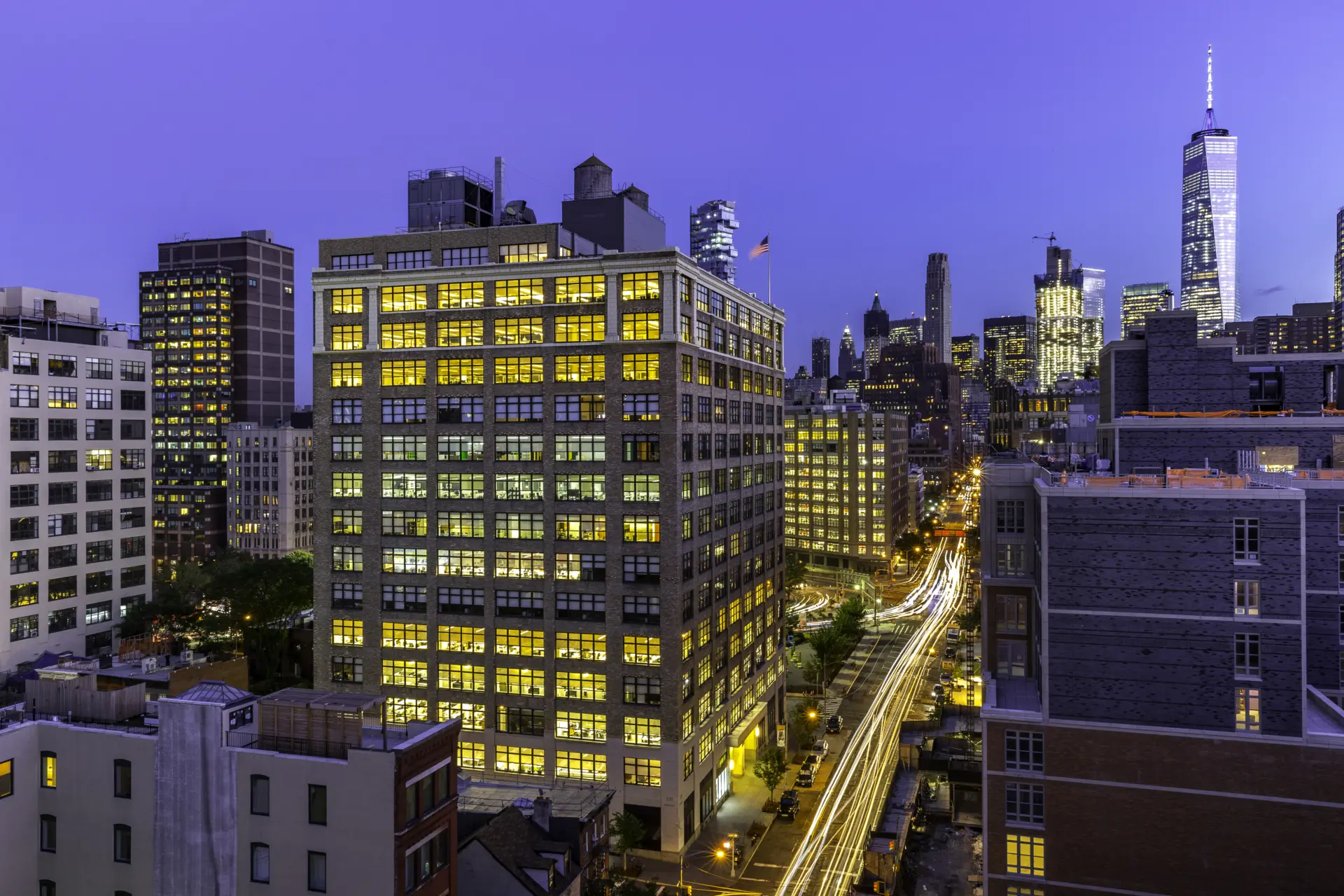 250 Hudson Street features a penthouse level with a 10,000 square foot landscaped roof, office space featuring high ceilings & sun-drenched center-core floors, and state of the art infrastructure. Tenants and visitors to the building enjoy a striking limestone lobby, elevator cabs, upgraded infrastructure, 24/7 access, and on-site management.