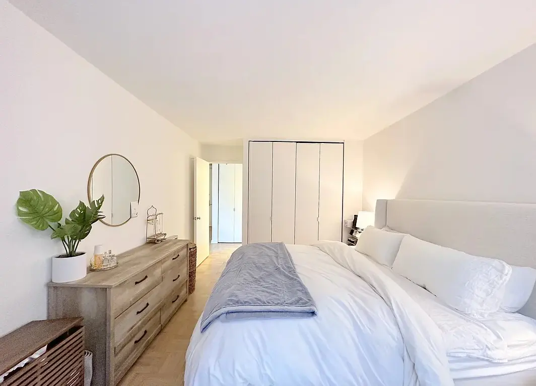 This spacious and RENOVATED 2 bedroom/2-bathroom residence features brand new hardwood floors, generous closet space, winged KING-SIZED bedrooms, and oversized windows that offer excellent natural light as well as city and Hudson River views! Your open-concept kitchen is outfitted with Caesarstone countertops and stainless-steel appliances including a GE dishwasher, gas range and oven, microwave, and Haier refrigerator. The light and bright bathrooms feature Caesarstone countertops, marble walls, porcelain tile flooring and oversized medicine cabinets for plenty of storage.